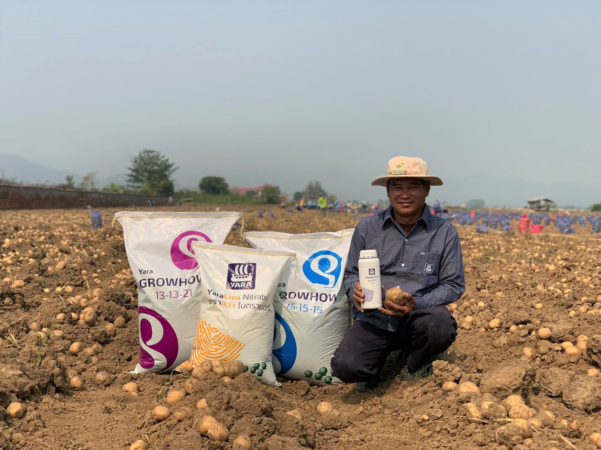 เคล็ดลับการใส่ปุ๋ยยารา เมื่อเริ่มปลูก ให้รองก้นหลุมก่อนนําหัวลงปลูกด้วย “ปุ๋ยยารา โกรฮาว 15-15-15” ปริมาณ 3 กระสอบต่อ 1 ไร่ เพื่อเร่งการเจริญเติบโต เมื่อมันฝรั่งอายุได้ 30-40 วัน ในช่วงที่ 2 นี้จะทําการกลบดิน เพื่อเร่งหัวมันฝรั่ง ให้ใหญ่ขึ้นอย่างมีคุณภาพ โดยใส่ “ปุ๋ยยารา โกรฮาว 13-13-21” ผสมกับ “ปุ๋ยยาราลีว่า ในตราบอร์ 15-0-0” ช่วยป้องกันผลแตก อาการไส้กลวง ทําให้ผิวมันฝรั่งไม่เป็นกระ และในช่วงนี้จะฉีดพ่นปุ๋ยน้ํา “ยาราวีต้า ข้าว” เสริมธาตุอาหารทางใบ เพื่อช่วยในเรื่องของการลงหัว เพิ่มเปอร์เซ็นต์แป้งให้ดีขึ้น น้ําหนักต่อไร่สูงหัวมันฝรั่งจะมีขนาดพอดี เหมาะแก่การนําไปแปรรูปและประกอบอาหาร